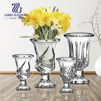 Florero de cristal transparente para decoración del hogar, precio a granel, gran oferta, mesa Vintage, grabado de tamaño pequeño, florero de cristal elegante